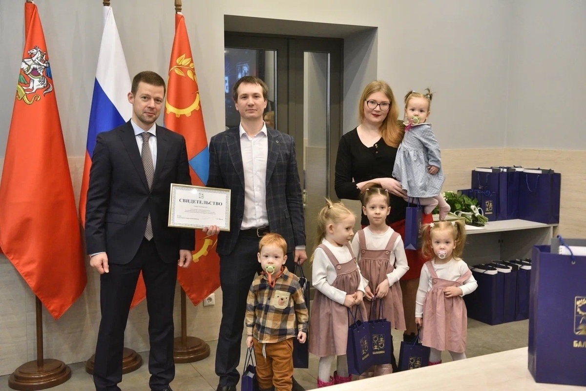 В Балашихе Сергей Юров вручил свидетельства на жильё 11 молодым семьям, включая участников СВО