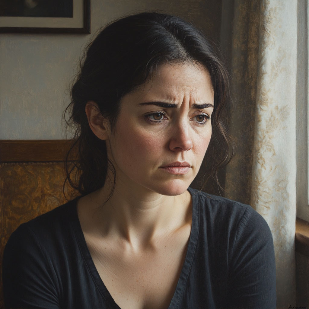 Тяжёлое лицо с потухшим взглядом.