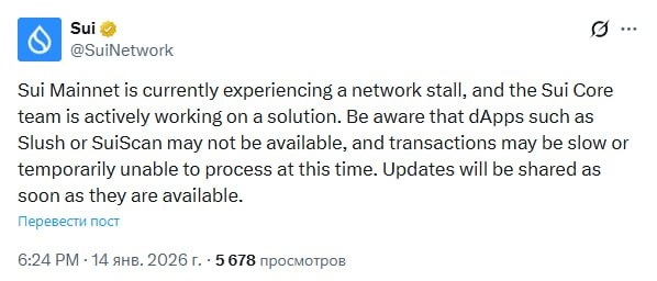 Имейте в виду, что децентрализованные приложения, такие как Slush или SuiScan, могут быть недоступны, а транзакции могут обрабатываться медленно или временно не обрабатываться. Обновления будут опубликованы, как только станет доступна новая информация.