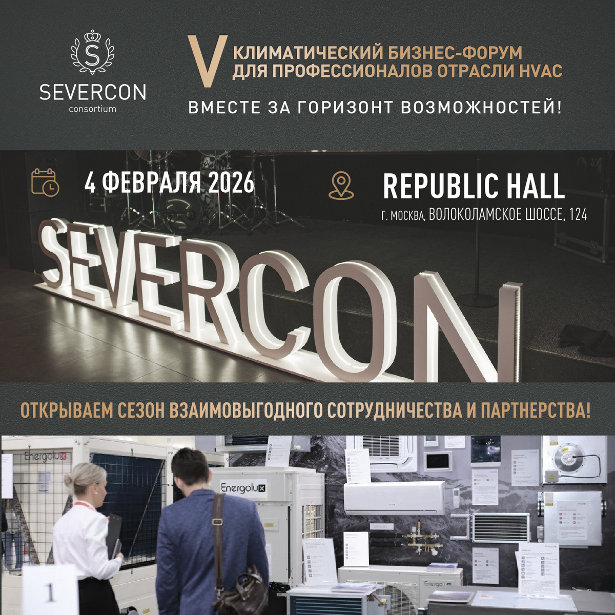 Дата: 4 февраля 2026 г. Место: Москва, Republic Hall (Волоколамское шоссе, 124). Расскажем и обсудим самое важное: ☑️ Итоги года и новые планы Severcon Consortium ☑️ Презентация новинок — RAC, PAC, Multi-систем от ведущих экспертов ☑️ Обновленная линейка промышленного оборудования и вентиляционных систем Energolux ☑️ Современные решения в тепловой технике ☑️ Нетворкинг, розыгрыш призов. Это главное отраслевое событие начала года для построения взаимовыгодного партнерства! Регистрируйтесь ЗДЕСЬ и сейчас! До встречи на форуме! Вместе за горизонт возможностей! #HVAC #КлиматическийФорум #Энерголюкс #Severcon #Нетворкинг #БизнесФорум #Тепловаятехника #Вентиляция #Кондиционирование
