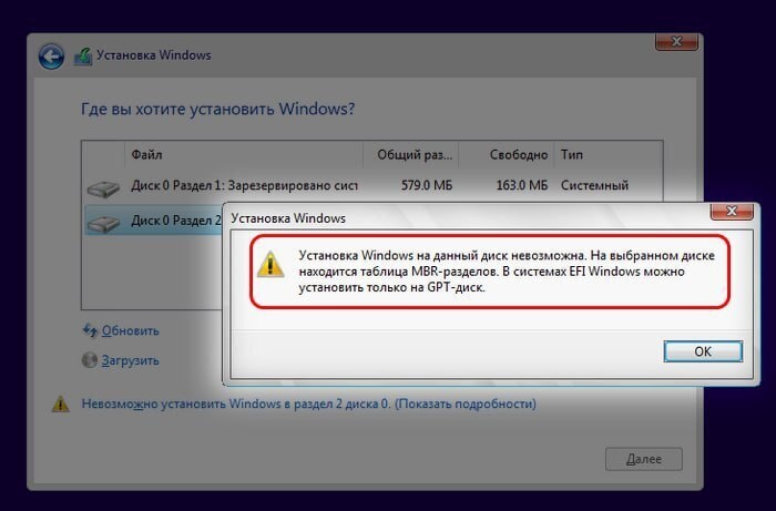 ❗️«Установка Windows на данный диск невозможна — на выбранном диске MBR