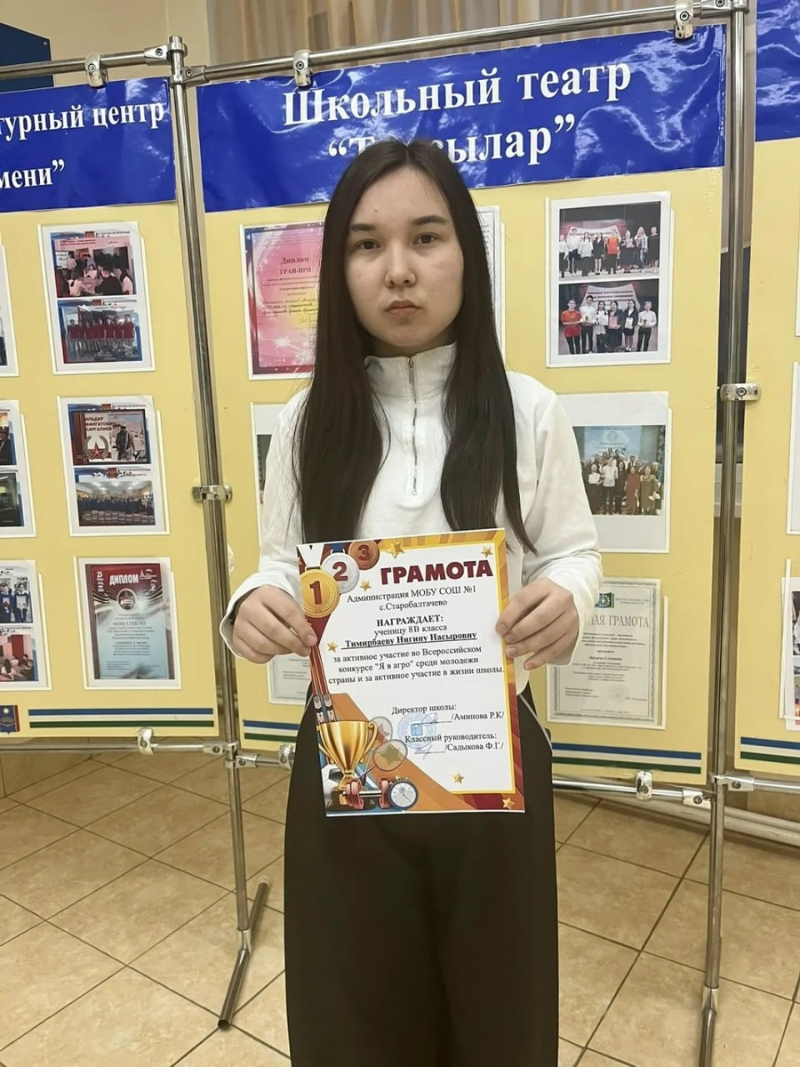 Ученица школы №1 села Нигина Тимербаева Старобалтачево приняла участие во Всероссийском конкурсе "Я в Агро