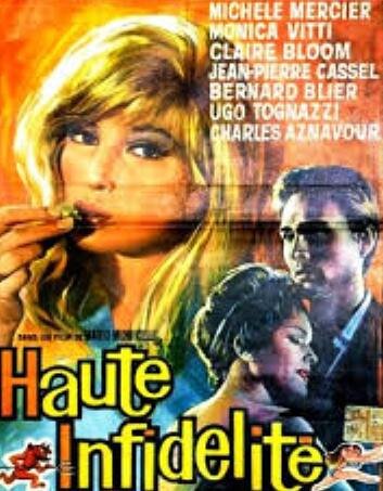 Высшая неверность / Alta infedeltà / Haute infidélité. Италия-Франция, 1963. Режиссёры: Франко Росси («Скандальный»), Элио Петри («Грех во второй половине дня»), Лучано Сальче («Вздыхающая») и Марио Моничелли («Современные люди»). Сценаристы: Руджеро Маккари, Этторе Скола, Эйдж и Скарпелли. Актеры: Нино Манфреди, Фульвия Франко, Джон Филлип Лоу и др. («Скандальный»), Шарль Азнавур, Клэр Блум («Грех во второй половине дня»), Моника Витти, Жан-Пьер Кассель, Серджио Фантони («Вздыхающая»), Уго Тоньяцци, Бернар Блие, Мишель Мерсье («Современные люди»). Премьера: 22.01.1964. Прокат в Италии: 3,4 млн. зрителей. Прокат во Франции: 0,5 млн. зрителей. В новелле Элио Петри «Грех во второй половине дня» жена пытается изменить своему мужу, но... Итальянская пресса отнеслась к «Высшей неверности» весьма кисло. К примеру, кинокритик Сандро Дзамбетти (1927-2014) писал, что «здесь нет ничего, кроме пошлости ситуаций, растянутых в преддверии финальной шутки, которая должна разорвать шутку на части» (Za