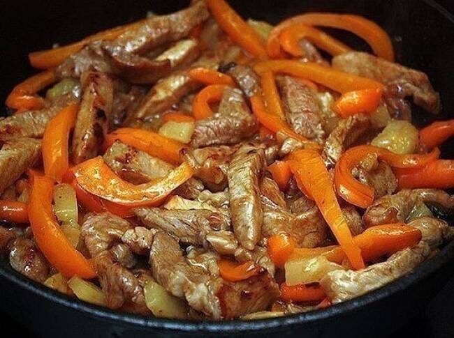 Мяско тоненько режем. Перчик режем кто как любит.