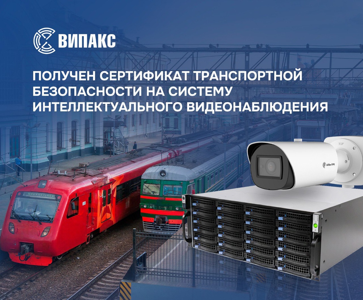 Система интеллектуального видеонаблюдения ВИПАКС успешно прошла испытания на соответствие требованиям обеспечения транспортной безопасности согласно Постановлению правительства РФ от 26 сентября 2016 г. № 969 (разделы V, VII, VIII Постановления). Сертификат подтверждает высокое качество и надёжность всех компонентов системы российского производства — видеосерверов Domination, камер АйТек ПРО и еще более 200 единиц оборудования и ПО ВИПАКС. Модульная система интеллектуального видеонаблюдения ВИПАКС может использоваться на объектах транспортной инфраструктуры в качестве масштабируемого решения для контроля безопасности. Ознакомиться с сертификатом можно по ссылке vk.cc/cTp9Rf. 👀 ВИПАКС — мы делаем мир безопаснее!
