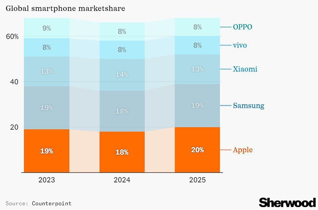 Apple has secured the top spot in global smartphone sales, according to a market report. The company maintains its lead in its core niche despite not having a leading AI assistant. Currently, the presence of a smart AI assistant is not a decisive factor for consumers when choosing a new phone.