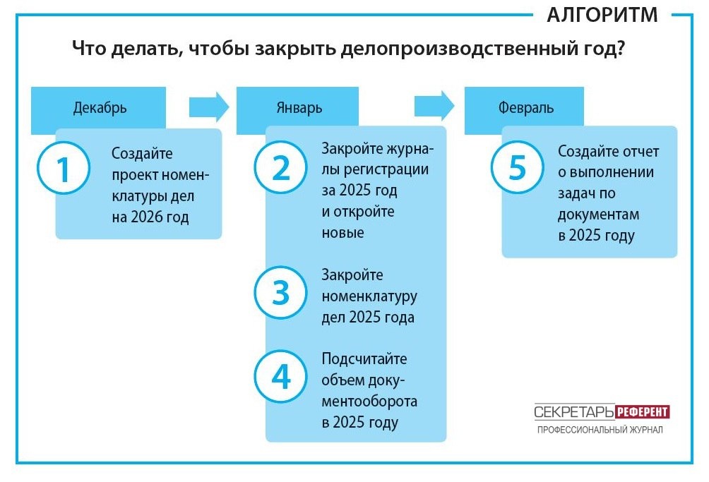 ?"! Закрытие делопроизводственного года – масштабный процесс, который нельзя провести за один день. Выполнять отдельные мероприятия по закрытию уходящего, а потом и прошедшего года придется всю зиму. Расскажем про особенности работы с номенклатурой дел и журналами регистрации в конце года, объясним, как составить отчет об исполнении заданий по документам. Скачать статью