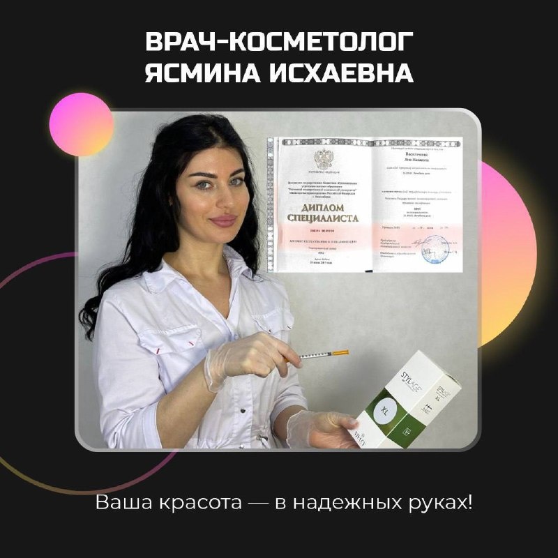 💕 Меня зовут Ясмина Исхаевна, я - врач-косметолог с высшим медицинским образованием, 10 лет опыта. Встречайте январь с обновлением — приглашаю вас на премиальные инъекционные процедуры по специальным ценам! действуют выгодные условия: биоревитализация — скидка 20 % (оживление и глубокое увлажнение кожи); контурная пластика — выгода 15 % (коррекция объёмов и очертаний лица); увеличение губ — скидка 15 % (естественный объём и чёткий контур); ботокс — экономия 10 % (разглаживание мимических морщин). Почему стоит записаться сейчас: гарантированный результат от сертифицированных препаратов; индивидуальный подбор схемы коррекции; комфортная атмосфера и забота на каждом этапе. Количество мест по акции ограничено. Запишитесь на консультацию, чтобы подобрать идеальный для вас протокол! Горящие акции и скидки на инъекции до -50%🔥 -Липолитики: от 6.000₽ (вместо 15000₽) -Био Гель стройность-13.000₽ вместо 18.500₽ И еще много всего смотрите в моем профиле: https://t.me/kosmetolog_y