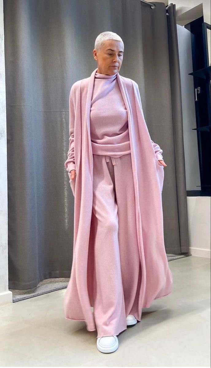 Вы купили этот мягкий, модный костюм. Примеряли в магазине — нежность. Дома смотрите в зеркало и чувствуете: что-то не так. Он не стройнит, а добавляет объем. Он не выглядит «дорого», напоминает домашний комплект. И вы снова надеваете проверенные джинсы и свитер, а костюм висит в шкафу с биркой. Знакомо? Дело не в вас. Дело в том, что к трикотажному костюму нужен особый ключ. Главная ошибка: ждать от него чуда, которое он не может дать Трикотаж — он как верный друг: мягкий, удобный, но не строгий. Ждать от него четких линий делового костюма — ошибка. Его сила в другом. И первая боль, которую мы чувствуем — «я в нем расплываюсь». Это происходит, если ткань слишком толстая, а фасон — бесформенный. Как исправить? 1 Смотрите на состав. -трикотаж с добавлением вискозы считается самым мягким и приятным к телу, не электризуется, сохраняет цвет после стирки) -трикотаж с добавлением шерсти, будет отлично удерживать тепло и согреет в холодную погоду. -трикотаж с добавлением кашемира, будет