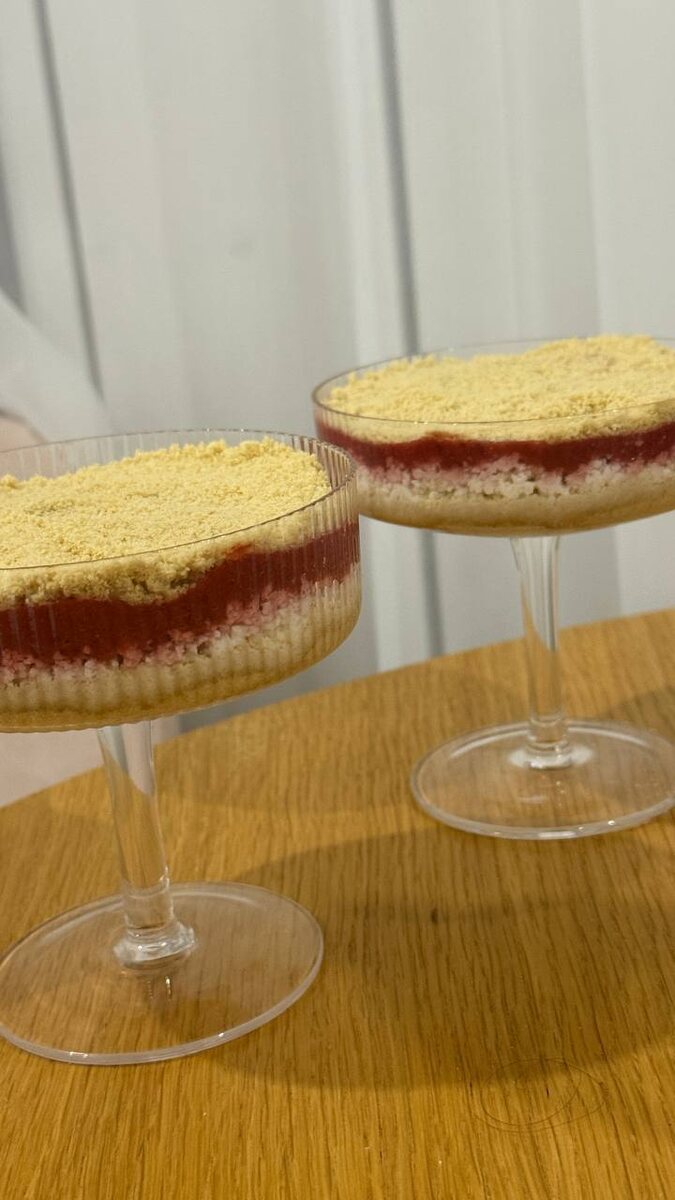 Нежная рикотта + ягодное пюре + хрустящая крошка… это прямо «хочу ещё ложечку» . Нам понадобится: • песочное печенье (любое) • рикотта • ягоды (у меня — замороженная клубника) Как готовим: 1) Печенье измельчаем в мелкую крошку. 2) Ягоды размораживаем и пробиваем в пюре (блендером). 3) В форму/креманки выкладываем слоями: • крошка из печенья • рикотта • ягодное пюре 4) Убираем в холодильник на пару часов. 5) Достаём, сверху ещё чуть-чуть присыпаем крошкой — и наслаждаемся! Получается нежный, освежающий десерт — идеально, когда хочется сладкого, но без тяжести ☺️