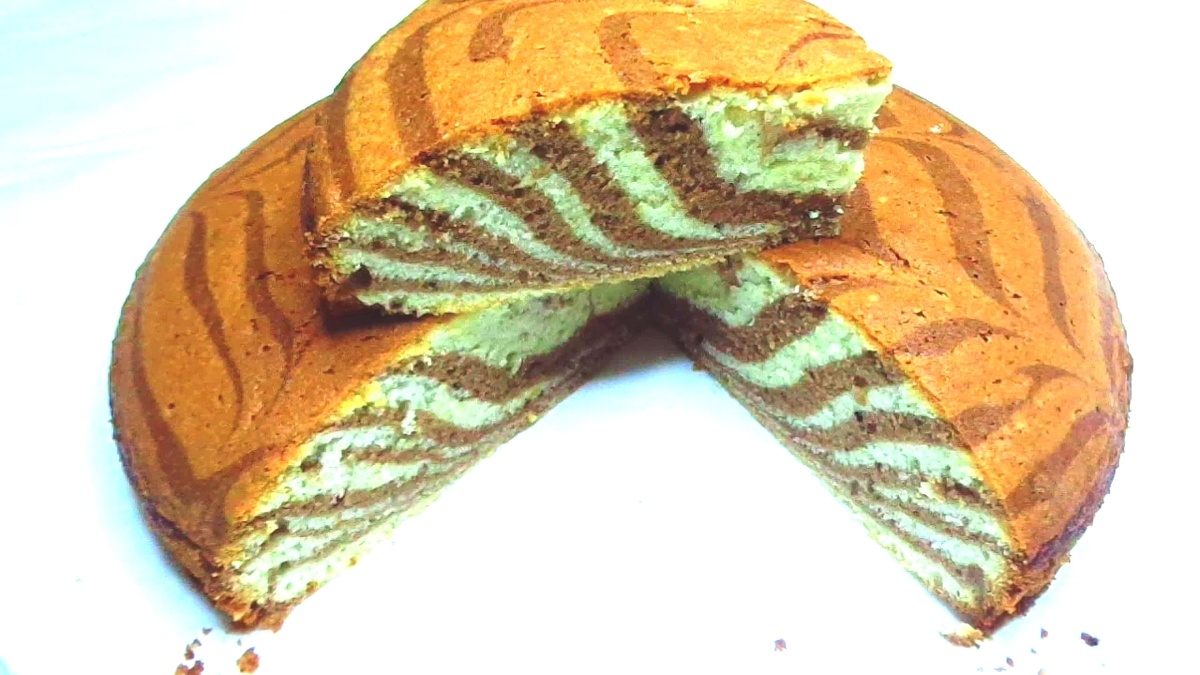 Вкусный, ароматный кекс "Зебра", порадует вас и ваших близких своим необычным видом и восхитительным вкусом. Этот кекс очень простой в приготовлении и не займет много вашего времени. =================== Яйца - 2 шт. Сахар - 160 гр. Щепотка соли. Молоко - 100 мл. Растительное масло - 100 мл. Мука - 210 гр. Разрыхлитель - 1ч.л. Ванильный сахар - 2 ч.л. Какао - 1ст.л. Форма для выпечки диаметром 20-22 см. ========================================= 1. Хорошо взбить миксером яйцо с сахаром и щепоткой соли до пышности (примерно 5-7 минут). 2. К просеянной муке добавить разрыхлитель и ванильный сахар, перемешать. 3. Во взбитую яичную массу добавить растительное масло и молоко, перемешать миксером. 4. Далее постепенно добавлять муку к жидким ингредиентам и размешивать миксером на низкой скорости. 5. Разделить получившееся тесто на две равный части, в одну часть теста добавить какао и хорошо перемешать. 6. Выкладывать тесто в форму для выпечки поочередно, по две столовые ложки. 2ст.л светлого те