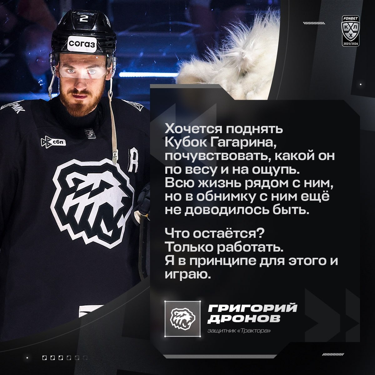 Защитник «Трактора» Григорий Дронов 🚜 в интервью KHL.ru поделился впечатлениями от вызова на Фонбет Матч Звезд КХЛ, работе с Евгением
