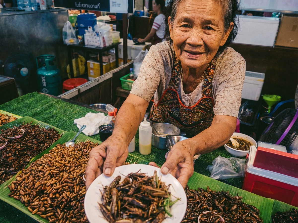 "К тому же," — добавил Сомчай, протягивая мне сверчка, — "это традиция. Мои предки ели насекомых 2000 лет назад. А ваши предки что ели?"