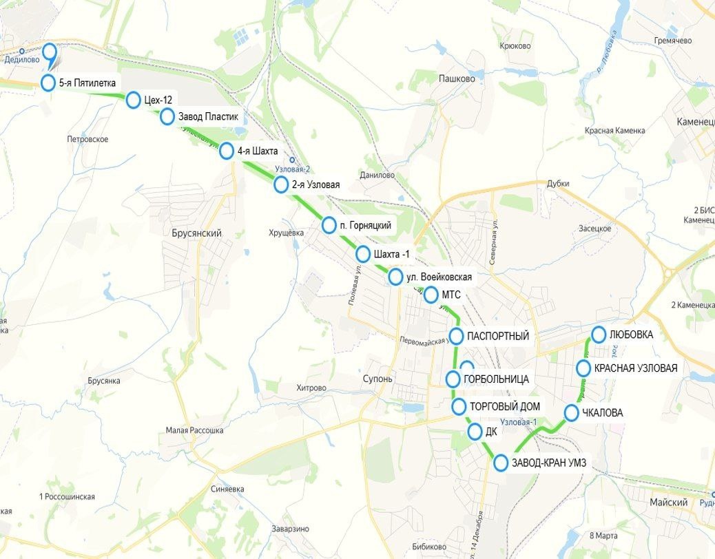 ! 🚌 Информируем о введении нового муниципального автобусного маршрута №2 «5-я Пятилетка — Любовка» с 15 января 2026 года. Маршрут будет обслуживаться автобусом малого класса. Перевозки будут осуществляться по следующему графику: От остановки «5-я Пятилетка»: 06:30, 08:30, 10:30, 12:30, 14:30, 16:30, 18:30. От остановки «Любовка»: 07:30, 09:30, 11:30, 13:30, 15:30, 17:30. Количество рейсов — 7 в прямом направлении и 6 — в обратном. Перевозки осуществляются по следующему перечню остановочных пунктов: 5-я Пятилетка, Цех-12, Завод Пластик, 4-я Шахта, 2-я Узловая, п. Горняцкий, Шахта №1, ул. Воейковская, МТС, Паспортный, Горбольница, Торговый дом, ДК, Завод, Кран УМЗ, Чкалова, Красная Узловая, Любовка. Стоимость проезда — 45 рублей. ❗️ Дополнительная информация и расписания остальных маршрутов региона доступна по ссылке.