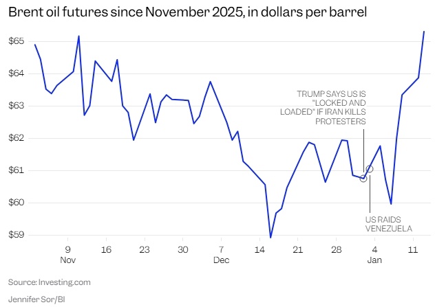 Аналитики указывают на риск нефтяного шока на фоне эскалации геополитической напряженности. Цены на нефть выросли на 10% за последнюю неделю на фоне напряженности в отношениях между США и Венесуэлой, а также беспорядков в Иране. Повышение цен на нефть может спровоцировать инфляцию и привести к распродаже акций и облигаций, заявил один экономист. В 1970-х годах экономика США испытала серьёзное давление из-за множества неблагоприятных факторов. Аналитики предупреждают, что вероятность повторения нефтяного шока, когда цены на нефть стремительно растут и вызывают цепную реакцию негативных последствий на рынках и в экономике, возрастает по мере обострения геополитических конфликтов. В последние недели цены на нефть резко возросли на фоне военной операции США в Венесуэле и угроз применения силы против Ирана, двух крупнейших мировых производителей нефти. Мартовские фьючерсы на нефть марки Brent, являющейся международным эталоном, за последнюю неделю подорожали на 10%, а во вторник их стоимост