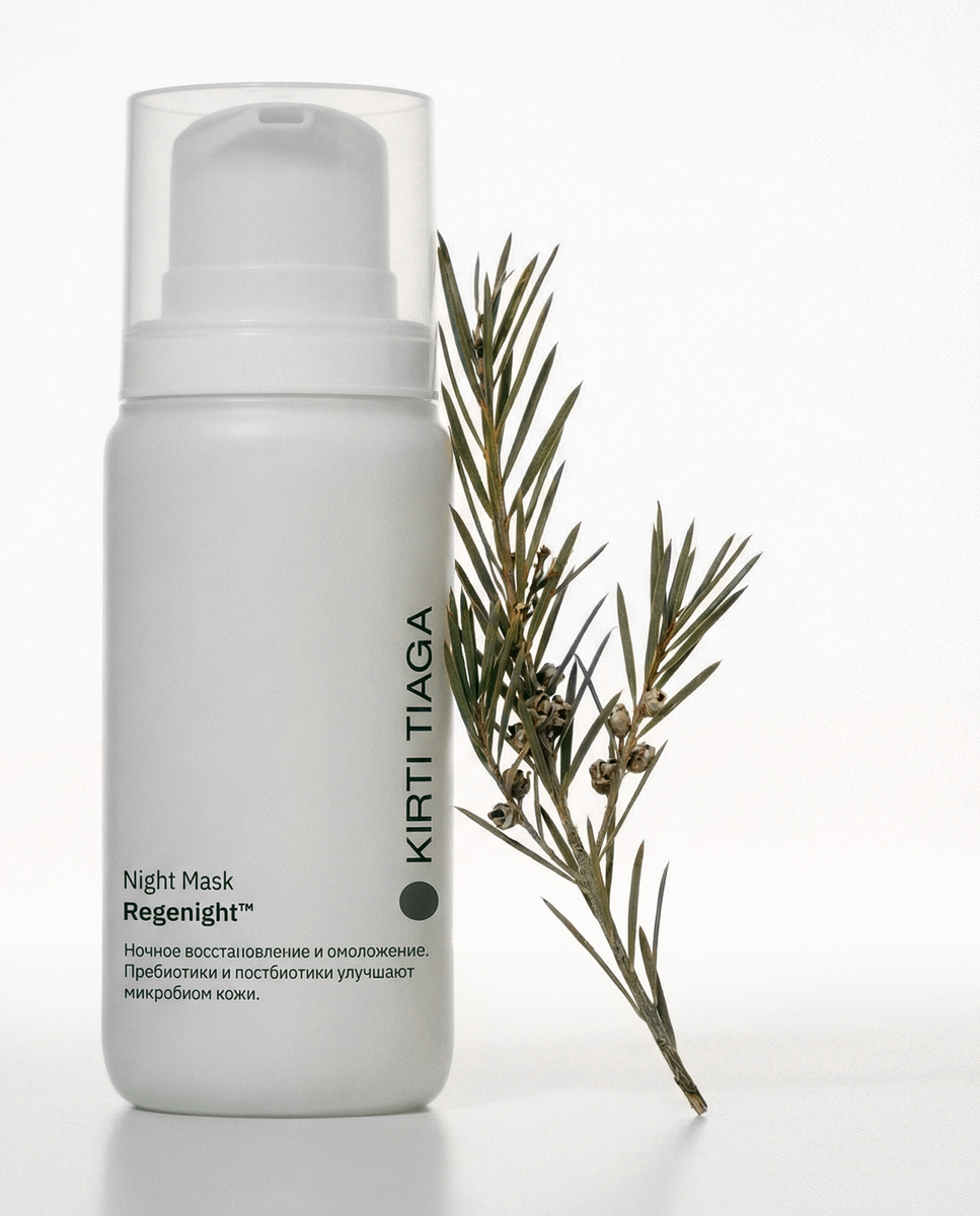 - Маска помогает клеткам активно обновляться. Утром кожа выглядит отдохнувшей, гладкой и напитанной. Для глубокой регенерации кожи ночью, когда процессы обновления максимально активны, используйте Night Mask Kirti Tiaga. Благодаря комплексу Regenight™ и постбиотикам, маска восстанавливает циркадные ритмы и укрепляет микробиом, стирая следы дневного стресса и недосыпа. Пока вы спите, активная формула восполн