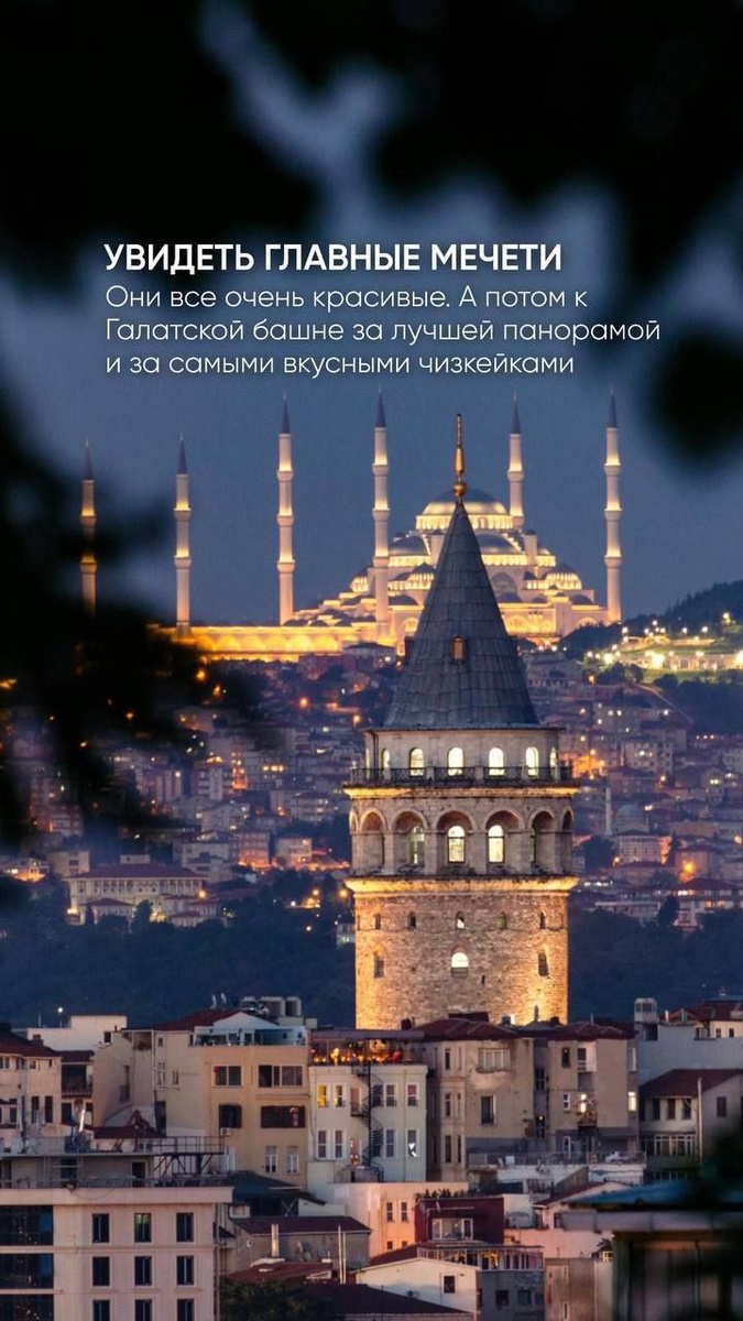 ! 😃Начните с главных мечетей Стамбула каждая поражает своей красотой и величием. Затем отправляйтесь к Галатской башне, чтобы увидеть лучшую панораму города и попробовать здесь знаменитые чизкейки. ☺️Обязательно покормите чаек на смотровых площадках с крыш, вид отсюда незабываемый. 😃Прогуляйтесь по оживлённой улице Истекляль и прокатитесь на очаровательном ретро-трамвайчике. ☺️Босфор душа Стамбула! Возьмите прогулку на яхте: виды на дворцы, мосты, особняки и два континента с воды покажут вам совсем другую Турцию. 😃Загляните и в азиатскую часть города здесь вас ждут потрясающие виды и уютный квартал с яркими цветными домиками. Стамбул город, который не оставляет шанса. Он обещает показать историю, а навсегда забирает сердце. Этот минимум только начало вашего путешествия. Цены из Москвы 13.03/ 6н/завтраки/2взр От 882 €