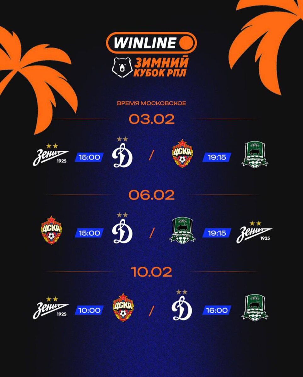 Расписание WINLINE Зимнего Кубка РПЛ, дамы и господа! 🦁🐃⭐👮♂️