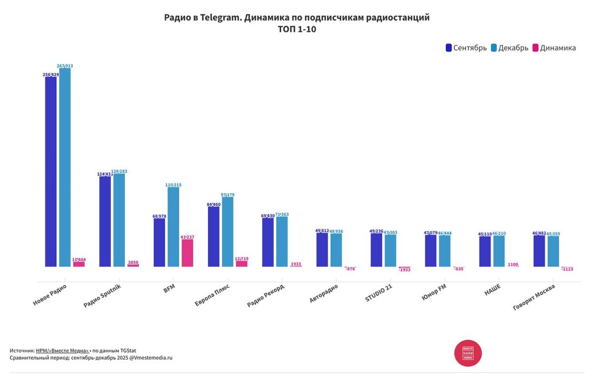 ➡️ Новое Радио — единственная радиостанция в категории >200К подписчиков и лидер по количеству подписчиков 267 913