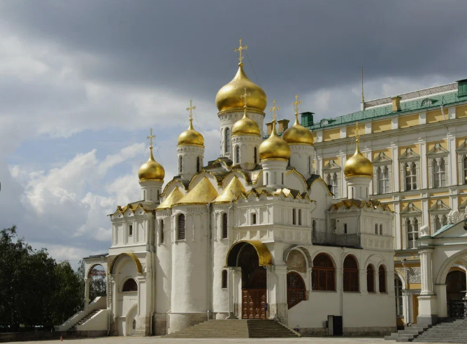 Благовещенский собор — один из древнейших и художественно значимых храмов на Соборной площади Московского Кремля. На протяжении веков он служил домовым храмом русских великих князей и царей, местом семейных церемоний и хранения святынь. Сегодня это памятник древнерусского зодчества и живописи, входящий в музейный комплекс Кремля. ============================ Современный собор возведён в 1484–1489 годах при великом князе Иване III. Его создавали псковские мастера — в отличие от других кремлёвских построек той эпохи, где трудились итальянские зодчие. 6 мая 1484 года — заложен фундамент, а в 1489 году — освящён в честь праздника Благовещения Пресвятой Богородицы (7 апреля). Собору предшествовали более ранние храмы деревянная церковь (предположительно с 1291 года) и каменный храм второй половины XIV века. Собор сочетает черты псковской школы и раннемосковского зодчества: Характерные детали: декоративные полукруглые нишки (псковская традиция), кирпичные пояски «бегунка» и «поребрика», ярусы