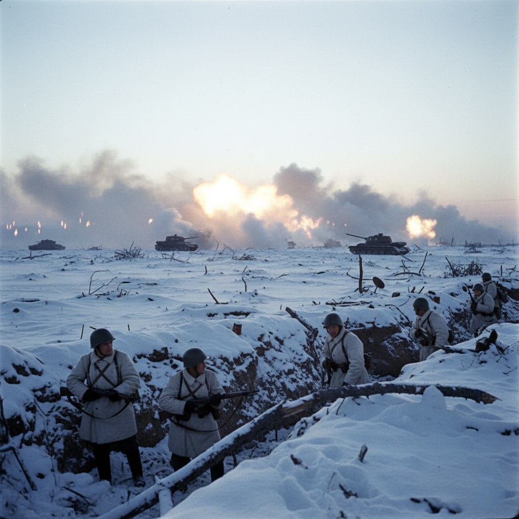14 января 1944 года Красная Армия переходит в решительное наступление под Ленинградом — начинается Ленинградско-Новгородская стратегическая операция, цель которой ясна и предельно жёстка: окончательно отбросить противника от города и навсегда снять блокаду. К этому моменту Ленинград находился в кольце уже 872 дня. Город выстоял — ценой сотен тысяч жизней, голода, холода и ежедневных обстрелов. Но к началу 1944 года ситуация на фронтах изменилась. Немецкая группа армий «Север» была истощена, резервы — ограничены, а Красная Армия впервые за войну получила возможность не просто обороняться, а планировать масштабное наступление с уверенностью в успехе. Утром 14 января артиллерия Ленинградского и Волховского фронтов обрушивает на немецкие позиции мощнейшую подготовку. Тысячи орудий и миномётов работают по укреплениям, дотам, узлам сопротивления. Особенно сильный удар наносится с Ораниенбаумского плацдарма — участка, который советским войскам удалось удерживать всё время блокады. Именно