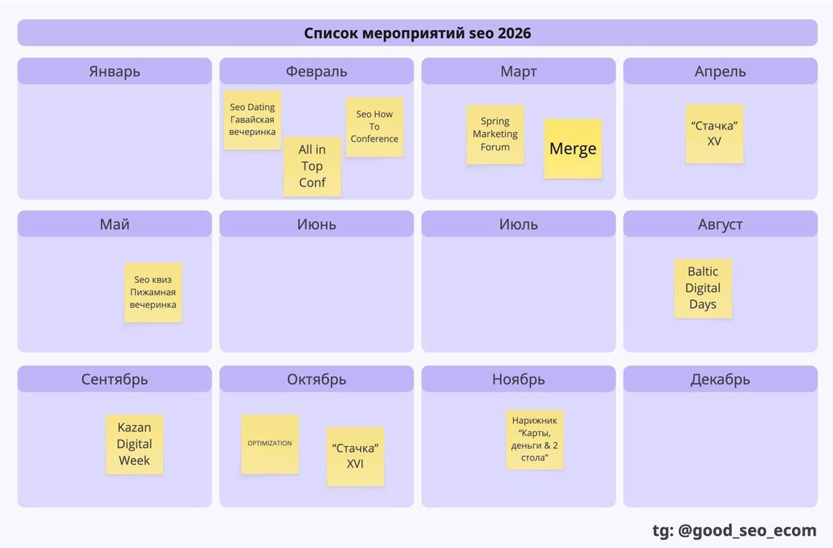 Всем привет!👋 Ловите список мероприятий по seo и интернет-маркетингу на 2026 год в России
