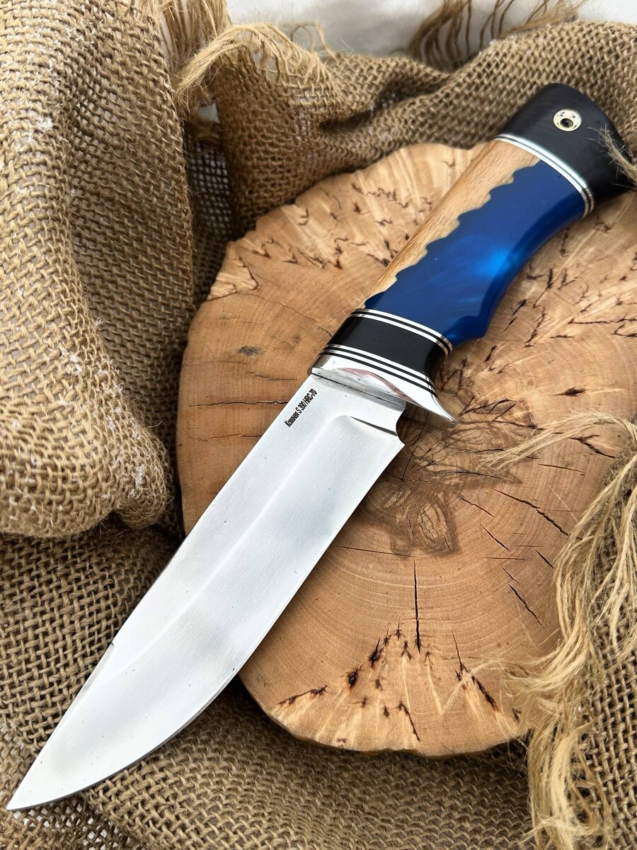 Самая твёрдая сталь S390 с никелем — выбор для настоящих ценителей. *Твердость клинка 70 HRC!* Спуски от середины клинка придают ножу невероятную прочность даже при боковых нагрузках — «Оса» не подведёт в сложной ситуации. ✨ *Рукоять из стабилизированной карельской берёзы («янтарь») и акрила синего цвета*. Анатомическая форма — максимум удобства и надёжности хвата. 🔪 Лезвие заточено в бритву — идеальная резка на охоте, в быту и коллекции. 🧳 В комплекте фирменные ножны из натуральной кожи. *По желанию — формованные ножны (+8000 руб.)* 🔥 Цена: 40.849 ₽ Со скидкой: 30.671 ₽ Арт.: 11733-3 — единственный экземпляр! 📲 Для заказа: @Nazarklinokbot или WhatsApp/Viber: +7 910 134-38-31 _Кузница Назарова В.В. — семейное мастерство, пожизненная гарантия качества._ #уникальныйнож #ножS390 #кузницаназарова #ручнаяработа #охота #коллекция #карельскаябереза #ножвподарок
