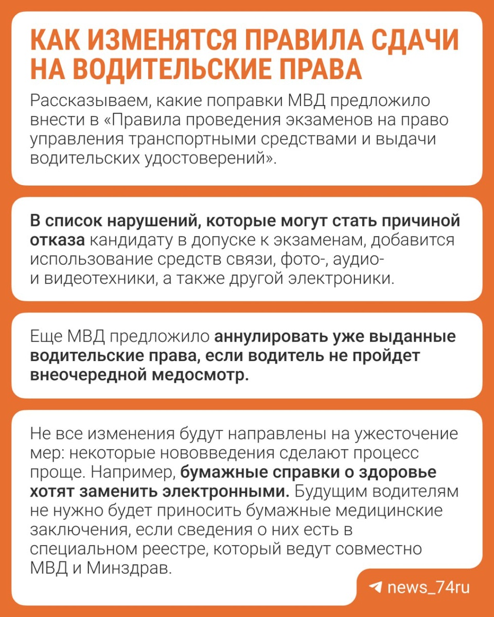 МВД предложило внести изменения в правила сдачи на водительские права. Какие запреты и послабления ждут будущих водителей, читайте в карточках ⬆️