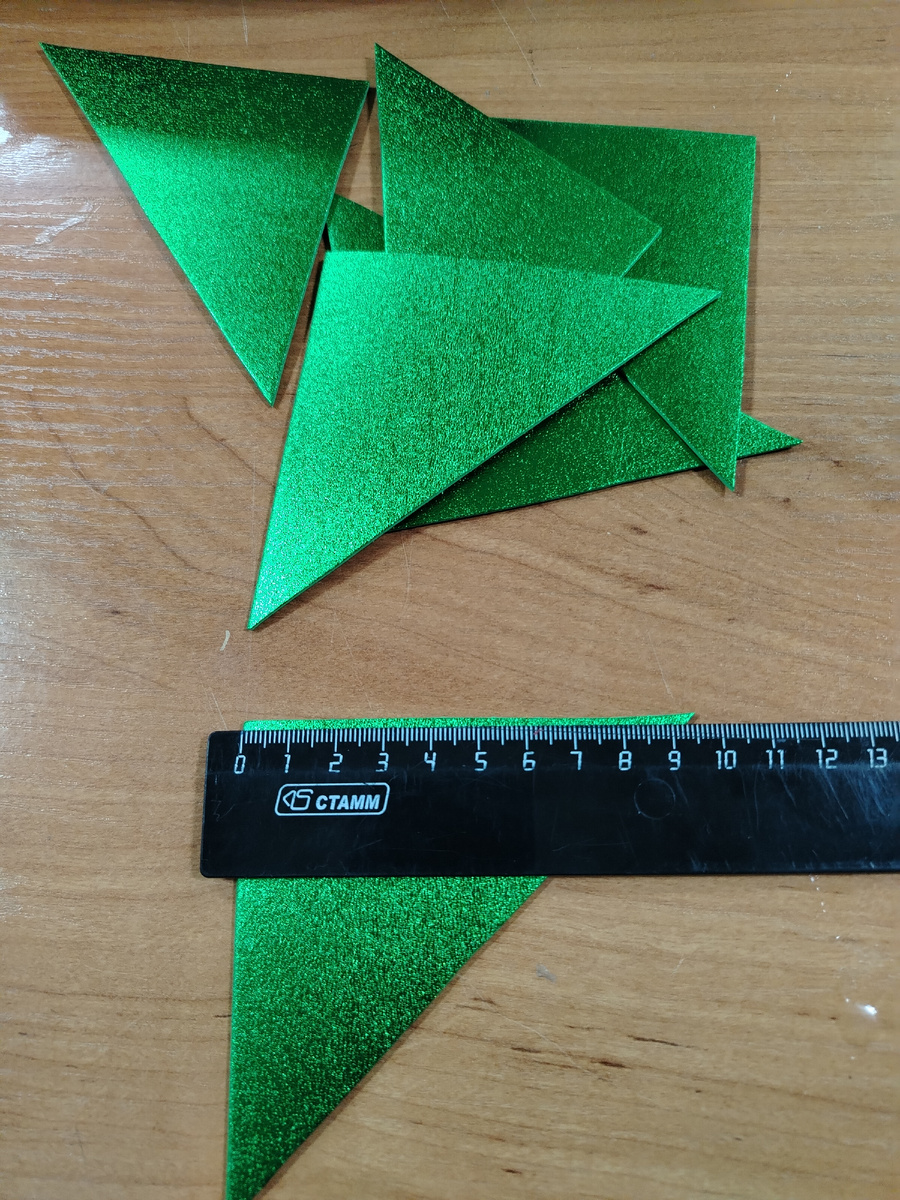 И так, поехали. Берем фоамиран 3 квадрата примерно по 10 см. И разрезаем вдоль пополам.