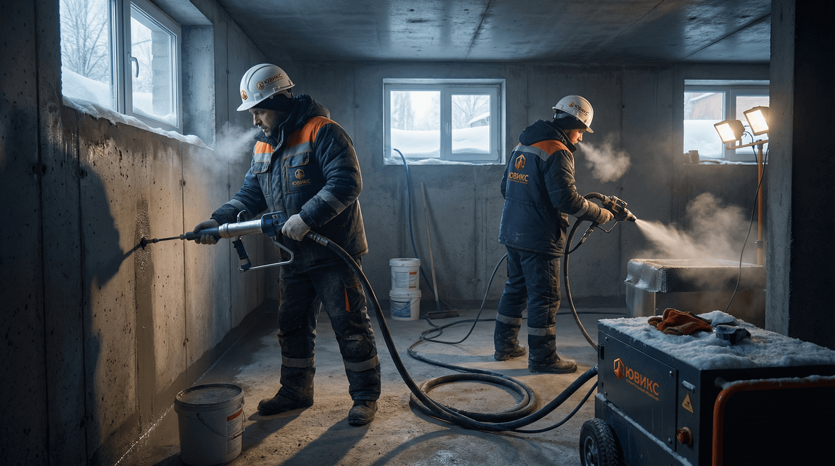 По данным Мосжилинспекции, около 35% жалоб на протечки в подвалах поступает именно в зимний период, что связано с сезонным повышением уровня грунтовых вод и оттаиванием верхних слоев грунта. Компания Ювикс Групп специализируется на работа при минусовой температуре с 2014 года, выполнив более 75 проектов различной сложности при температурах до -25°C. Наши технологии прошли проверку в самых сложных условиях зимней эксплуатации.