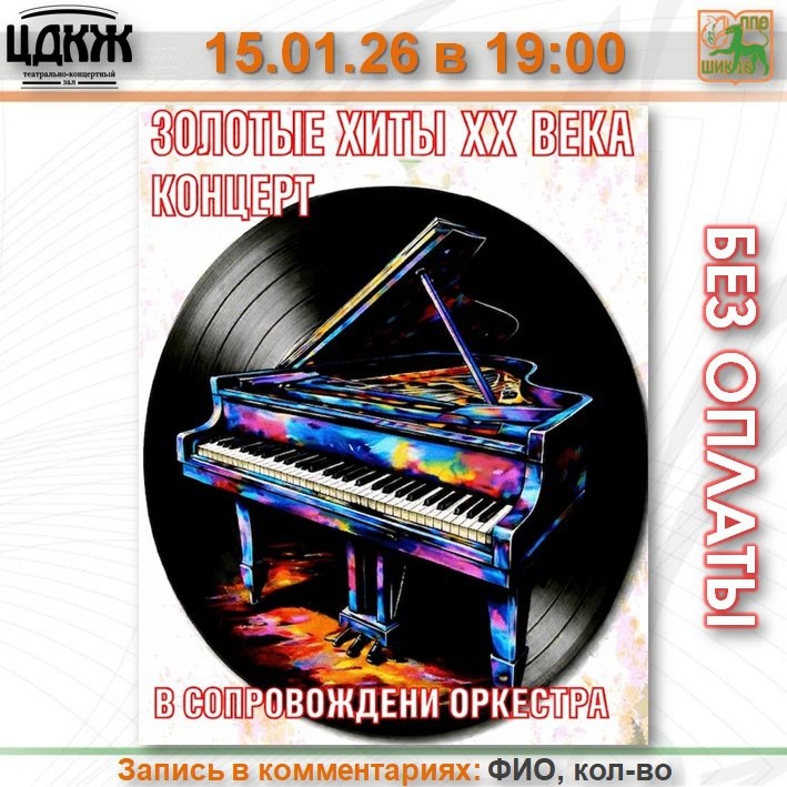 💃🕺Концерт «Золотые хиты ХХ века», 12+ 🎤 Живая Музыка и Звук. 👛 БЕСПЛАТНО 🎫 В наличии 4 билета Вашему вниманию будут представлены сочинения величайших композиторов XX века, дарившие радость, умиление и веру в светлое будущее миллионам людей во всем мире , а заодно находящие отголосок и в сердцах множества их потомков, прозвучат во всем своем ностальгическом великолепии — и, разумеется, в живом исполнении. 📝 Запись в комментариях к посту. ☎Записались? Убедитесь, что заявка принята! Обязательно звоните председателю ППО!