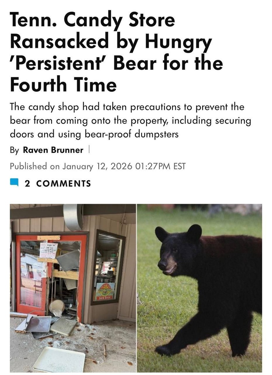 Медведь-сладкоежка в четвертый раз устраивает ограбление в американской кондитерской. Он разведал, где хранятся ингредиенты для выпечки и 3 раза вламывался в магазинчик, брал булки и убегал. Работники урок усвоили: настроили баррикады, улучшили вентиляцию и накрыли все крышками. Косолапый оказался умнее и в последний раз отомстил, своровав ВСЕ коробки с вкусняшками, включая сладкое тесто и заготовки. Теперь власти думают, как гуманно отучить животное от любви к десертам. Наш уровень упорства на кухне в 12 ночи, когда хочется сладенького