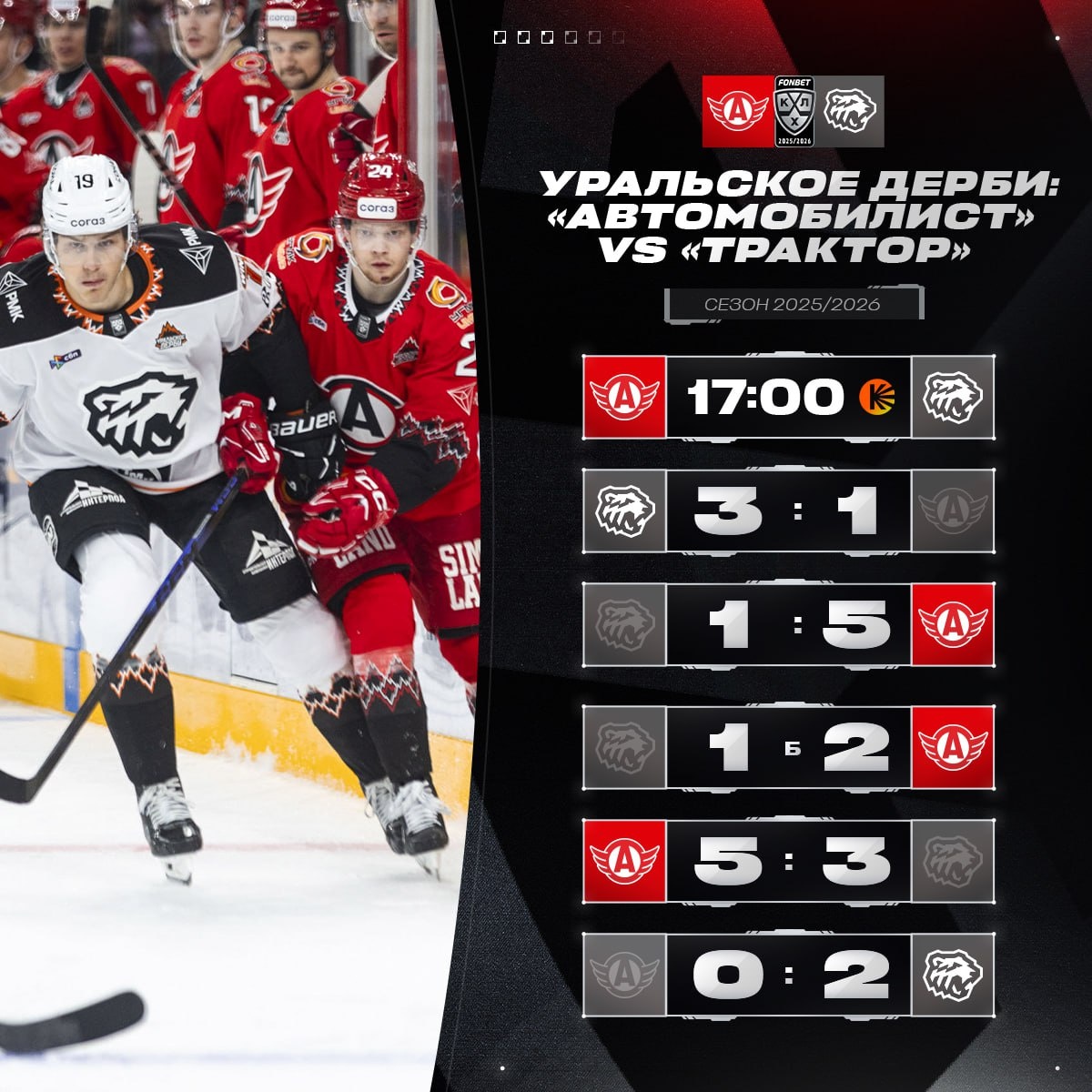 Нас ждет заключительная, шестая встреча «Автомобилиста» и «Трактора» в регулярном сезоне 2025/2026. Сравняют ли челябинцы счет в Уральском дерби?