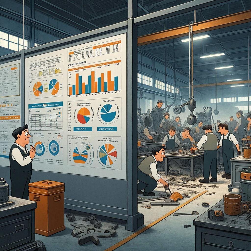 Помните восемь классических видов потерь в бережливом производстве? Это: В реалиях отечественных предприятий часто появляется «девятый вид потерь». Вы вряд ли найдёте его в японских и европейских учебниках и пособиях, но работникам, порой приходится с ним сталкиваться. Эта потеря связана с «ритуалом показательных выступлений». Ситуация: директива «внедрить Lean» спускается сверху как приказ. Успех меряется не реальными улучшениями потока, а фотоотчётами о разметке на полу. За несколько дней до визита проверяющих начинается «аврал»: