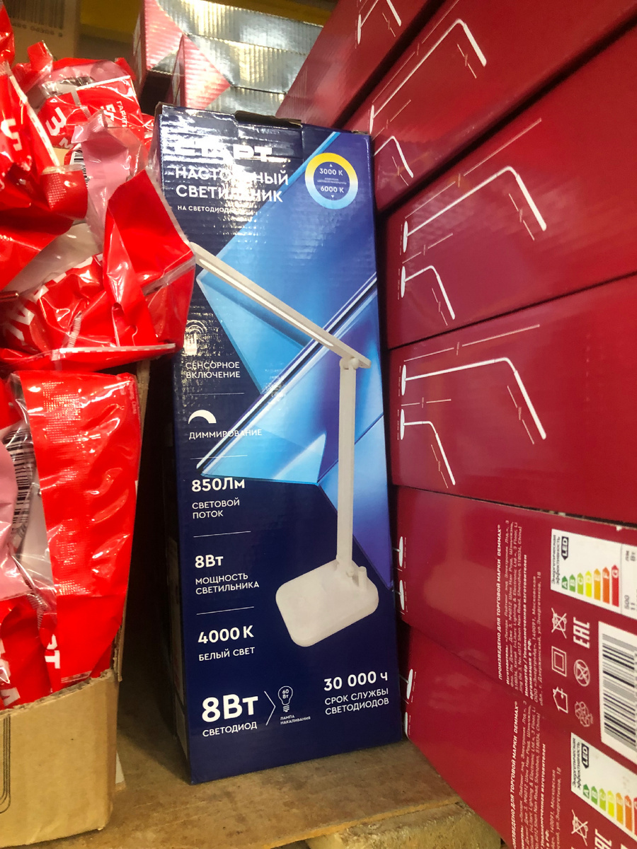 - Настольный светильник "Старт" за 611 рублей. Ну, это уже что-то более солидное. Сенсорное управление, теплый свет… Поставил бы на рабочий стол, если бы он у меня был.