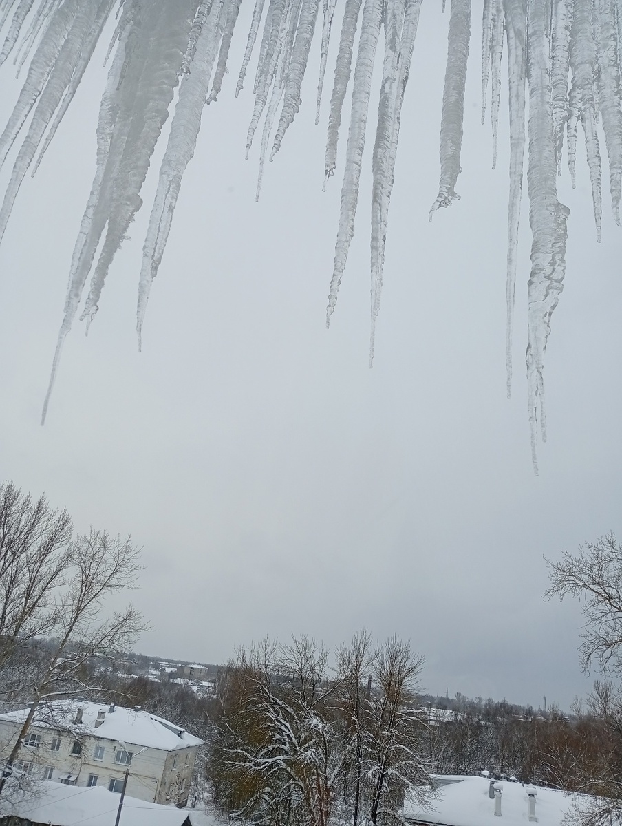 Такие сосульки образовались, будьте осторожны, не ходите близко у стен домов на ул Металистов 13