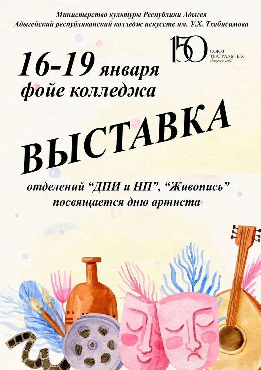 Праздник будет отмечаться впервые в России 17 января. День артиста учреждён по инициативе председателя Союза театральных деятелей Российской Федерации Владимира Машкова и приурочен ко дню рождения основателя системы актёрского мастерства Константина Станиславского. Он посвящён музыкантам, певцам, артистам театра, кино и цирка. В рамках празднования в Адыгейском республиканском колледже искусств им. У. Тхабисимова запланированы следующие мероприятия: ⭐️с 16 по 19 января — выставка творческих работ студентов отделений «Декоративно-прикладное искусство и народные промыслы» и «Живопись»; ⭐️16 января в 12:00 — открытая лекция преподавателя колледжа, заслуженного деятеля искусств Республики Адыгея Светланы Шхалаховой «Черкесские вечера в Екатеринодаре начала ХХ века» (малый зал колледжа). Вход на мероприятия свободный. Организаторы — Министерство культуры Республики Адыгея и АРКИ имени Умара Тхабисимова. Мероприятия проводятся в рамках празднования 150-летия Союза театральных деятелей Р