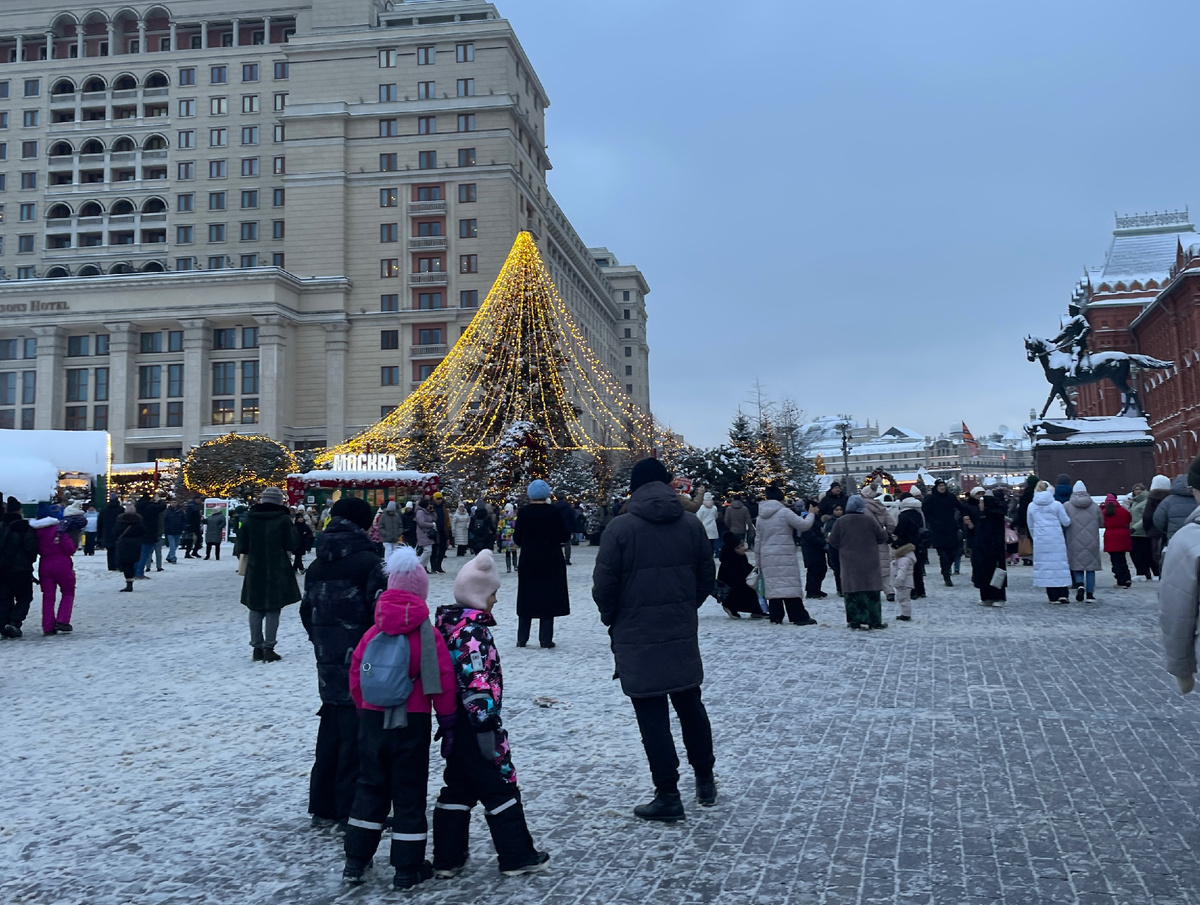 Ты идешь по улице или тебя уносит поток? Да-да, такое ощущение, будто ты растворился в толпе и тебя уносит, как течением в бурной реке. Но наших людей не остановить, хотя все были в курсе и смотрели новости, что перед Красной площадью и на ней не протолкнуться. Но как же не увидеть нарядную, красивую, светящуюся тысячами огней столицу нашей прекрасной огромной страны. Вот и мы не усидели дома и уже четвертый Новый год поехали на Красную площадь. Мне соседи говорили и не раз, что в новогодние праздники они не ездят на Красную площадь, а едут туда потом, когда туристов станет меньше. И в комментариях под моими статьями в Дзене читатели-москвичи тоже писали подобное. Да, когда живешь в Москве всю жизнь, то, возможно, уже не так важно посетить Красную площадь именно в Новый год. Прямо в Новый год и мы не ездим туда. Каждый год по-разному, то 30-го числа, а в этом году и вовсе 3-го января. Но эти даты близки к самой праздничной. А перед 31-м и настроение более праздничное, ибо находишься в