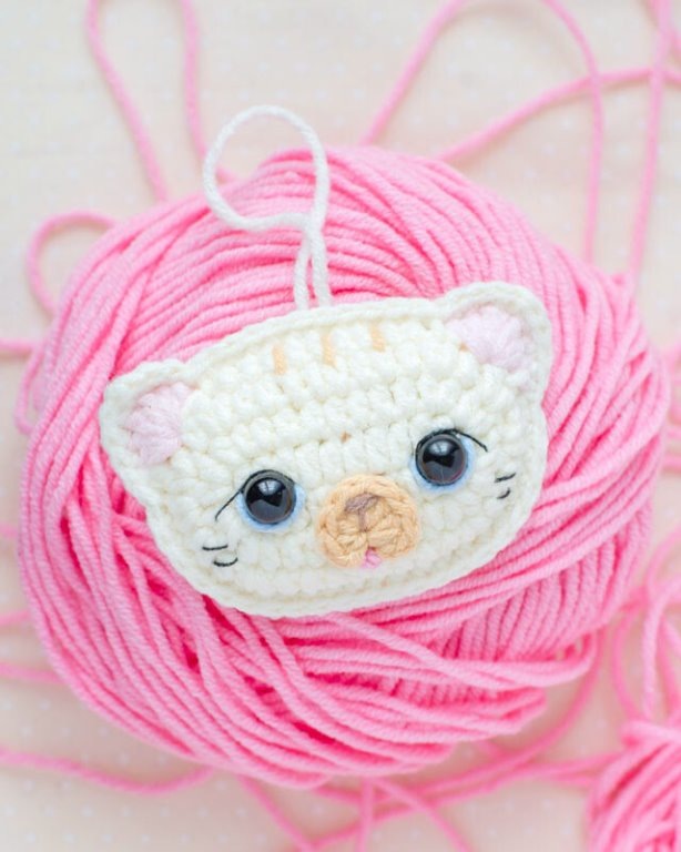 Хотите связать что-то быстро? Всего за час вы сможете создать очаровательного котенка. Это может быть брелок на сумку или рюкзак, брелок для ключей. Для вязания этой плоской игрушки подойдут остатки пряжи. Техника: по кругу