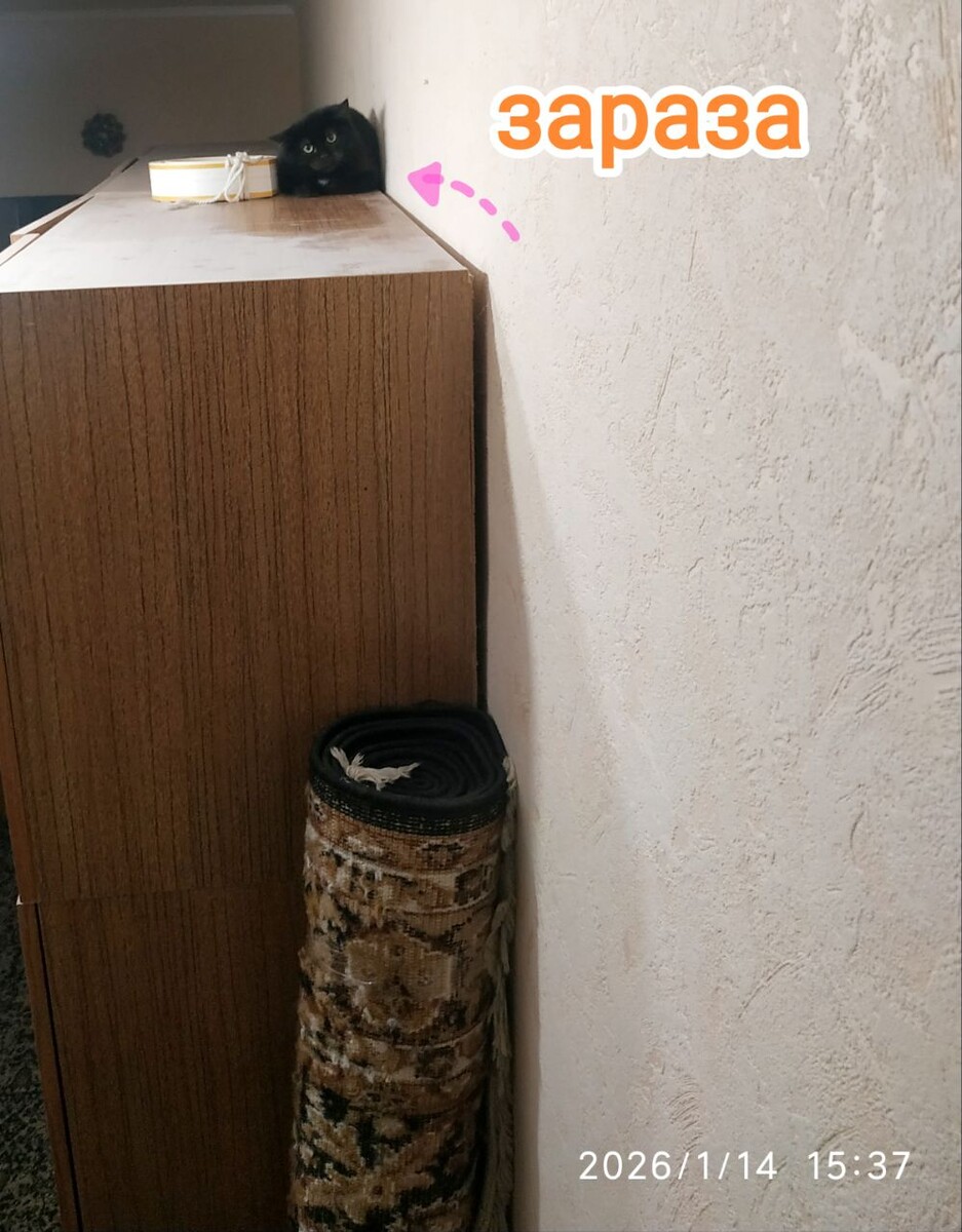 !(😠 Лору, маленькую заразу, искала по квартире час!( Пять этажей туда-сюда носилась...😳 Кухонные ящики и плинтуса отодвинула, плиту выдвинула, все что можно вытащила и выдвинула... Котенок на Карантине и ограничен кухня- туалет- коридор..😳 В последнюю очередь решила под потолок посмотреть..🤷 А Лора там и, видимо, ржёт над моей истерикой .. +79969591184 +79114803040
