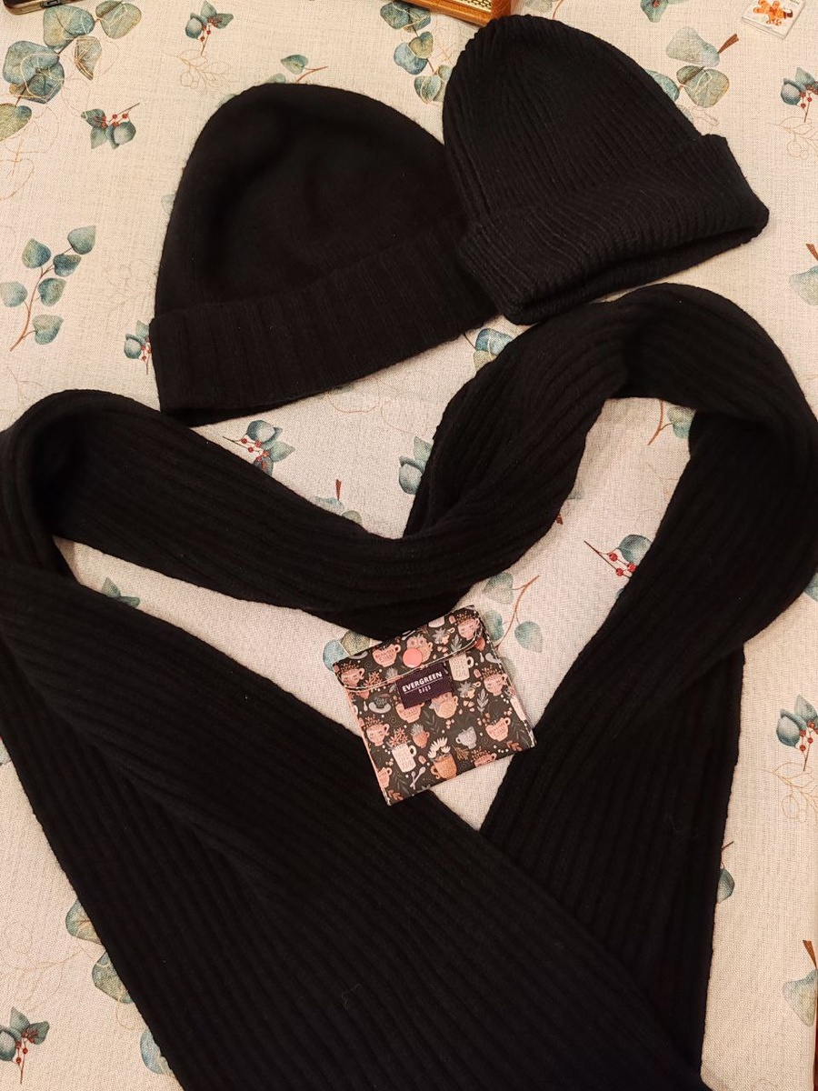 У меня связались 2 шапочки и шарф, все из черной пряжи - любимый Як Непал шапка сверху вниз дубль 2 и графическая шапка из Double Sunday.