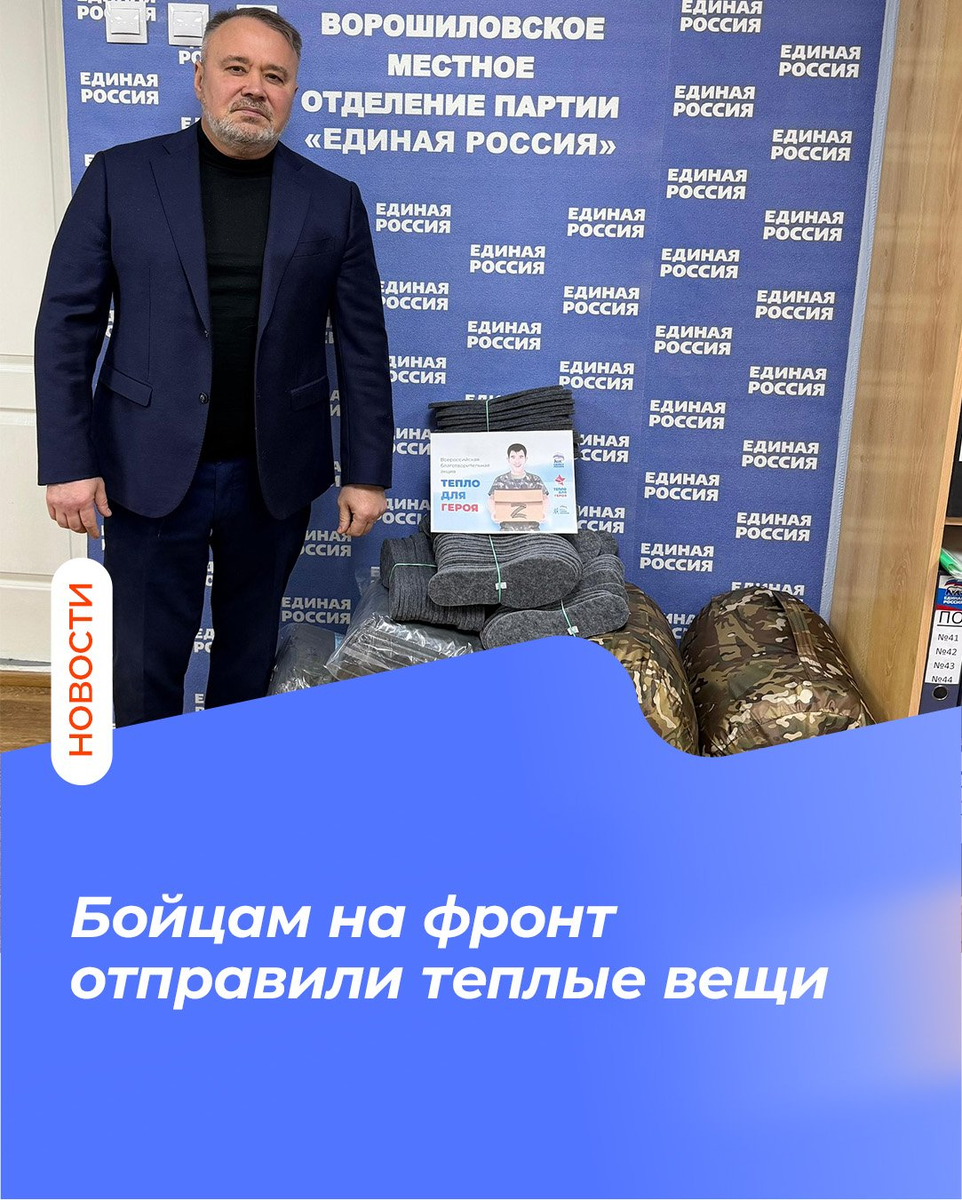 Бойцам отправили теплые вещи. Их передал депутат «Единой России» Магомед Дарсигов в рамках акции «Тепло для Героя». 💬 «Принес вместе с коллегами в Ворошиловское местное отделение «Единой России» спальные мешки, тельняшки, брюки, носки, тёплые шапки, стельки, средства личной гигиены, ухода. Через несколько дней этот груз, собранный с домашним теплом, отправится к парням на передовую. Искренне желаю нашим бойцам сохранять оптимизм и выдержку, каждый из нас думает о них и всегда придет, чтобы поддержать», – заявил депутат.