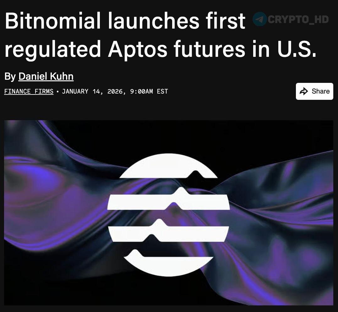 🇺🇸 #APT Биржа деривативов Bitnomial объявила о запуске первых в США регулируемых фьючерсов на Aptos.