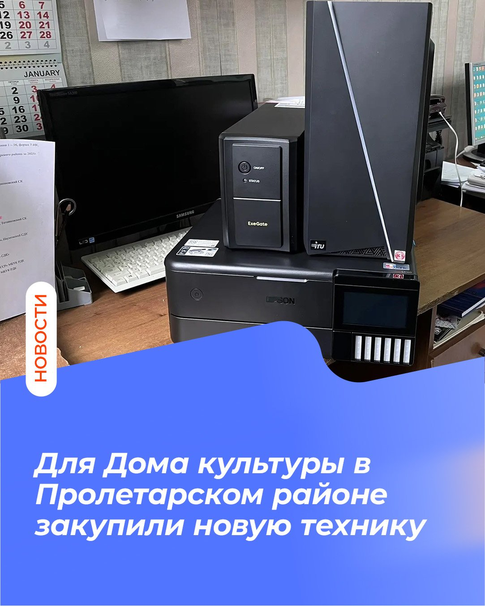 Учреждение получило новый цветной принтер, компьютер с программным обеспечением и бесперебойное устройство. Такую просьбу сотрудников к Новому году выполнил депутат «Единой России» Александр Ремета. 💬 «Поддержка культурных учреждений – это наша общая задача. Ковринский дом культуры играет важную роль в жизни сельского поселения и это только начало. Мы продолжим оказание помощи учреждения культуры Пролетарского района», – отметил депутат.