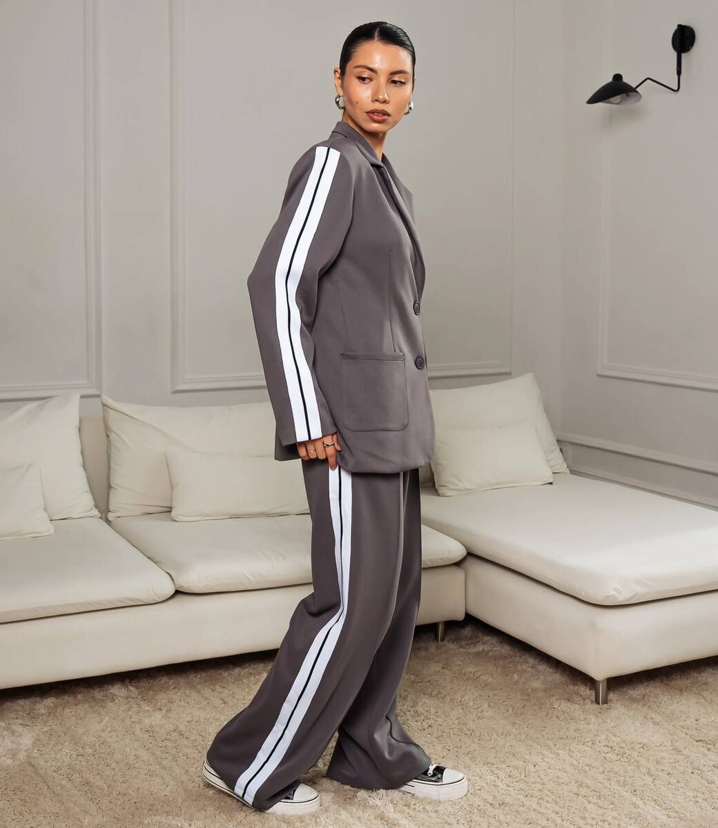 Тренд 2026 когда комфорт выглядит дорого Костюмный дуэт с лампасами в насыщенном графитовом оттенке и туманно сером идеальный баланс стиля и свободы. Свободные брюки на мягкой резинке подчёркивают талию, не сковывая движений, а жакет кроя casual добавляет образу расслабленной элегантности. Этот костюм легко адаптируется под твой ритм: ♡офис без строгого дресс-кода ♡встречи в городе ♡стильные путешествия ♡повседневные образы с акцентом на тренды Лампасы вытягивают силуэт, графит смотрится благородно и дорого, а посадка делает образ актуальным вне времени. Один дуэт — десятки стильных комбинаций🩶 Цена 5950- Оформить заказ, помочь с размером - напишите нашим менеджерам