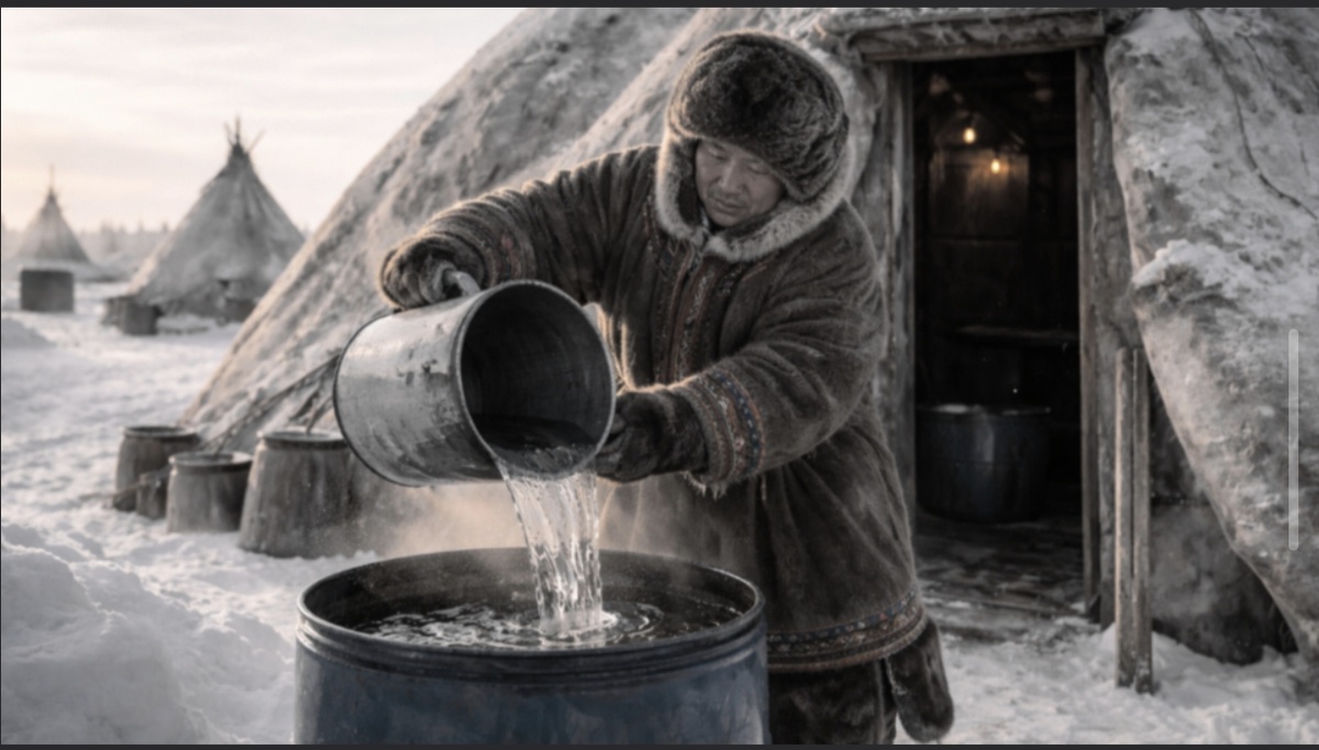 У северных народов есть привычка, которая кажется странной всем, кто впервые сталкивается с настоящим морозом. Воду оставляют в ёмкости открытой на улице, причем иногда на несколько часов или даже дней.