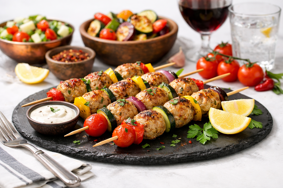 Иногда хочется мяса, но не тяжёлого, не жирного и без ощущения «перебора». Эти мини-кебабы из индейки как раз из этой категории. Сочные внутри, с подрумяненной корочкой, с овощами, которые пропитываются соком мяса. Подходят и для ужина, и для праздничной подачи, и для тех, кто считает калории, но не хочет есть скучно.