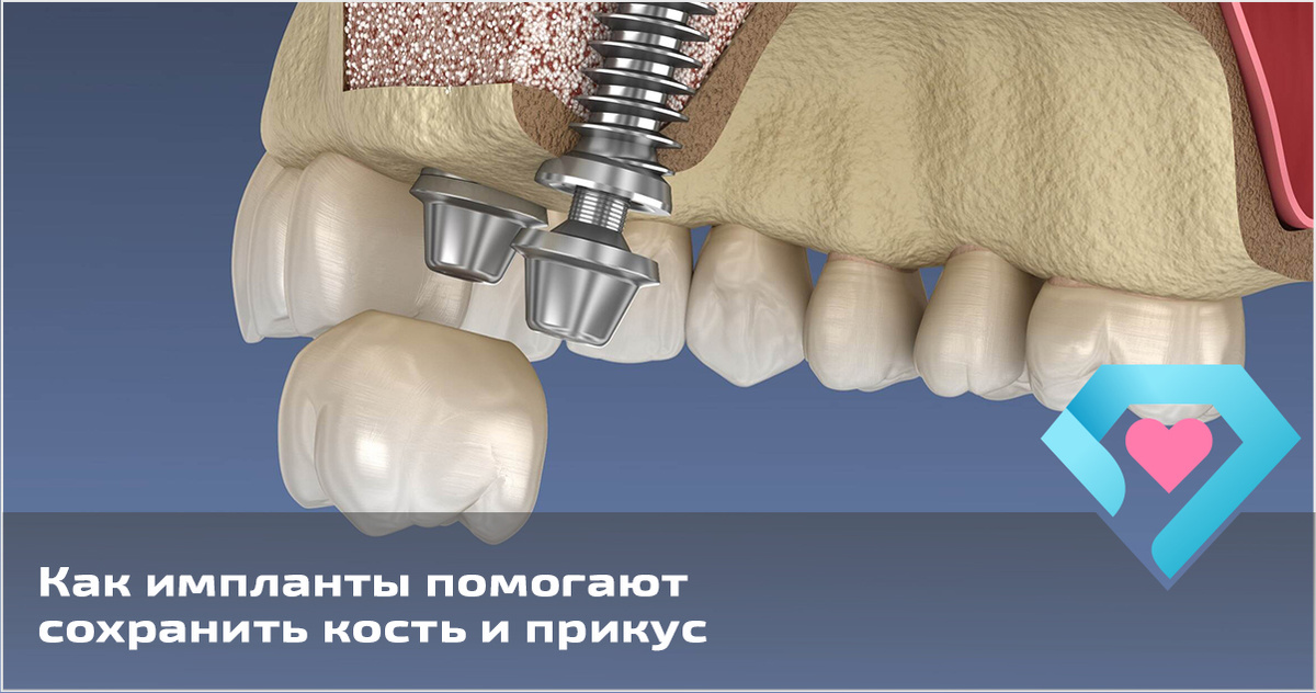 Потеря зуба — это не только эстетическая проблема. При отсутствии зуба костная ткань постепенно рассасывается, а прикус нарушается: соседние зубы смещаются, жевательная нагрузка распределяется неправильно, и со временем это приводит к проблемам с жеванием и изменению формы лица. Почему кость разрушается Корень зуба постоянно передаёт нагрузку на кость при жевании. Эта стимуляция поддерживает плотность костной ткани. Когда зуб утрачен, нагрузка исчезает — кость начинает атрофироваться, уменьшается её объём, и это негативно влияет на прикус и эстетический вид лица. Роль имплантов Дентальные импланты — это титановые конструкции, которые внедряются в кость и служат заменой корню зуба. После остеоинтеграции имплант передаёт жевательную нагрузку на кость, предотвращая её рассасывание. Имплант также стабилизирует прикус, удерживает соседние зубы на месте и восстанавливает полноценную жевательную функцию. В отличие от съёмных протезов, которые не передают нагрузку на кость, имплант сохраняет е