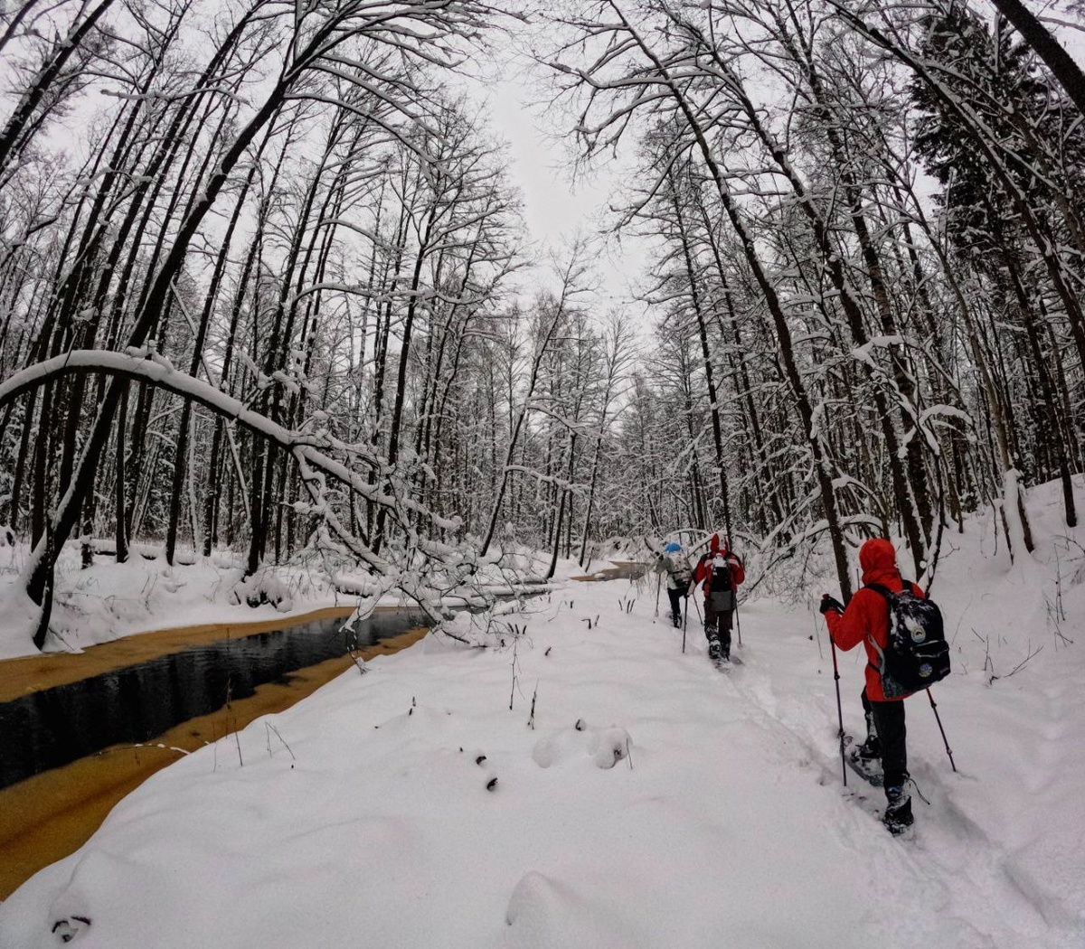 Река Белая в Рязанской области и наш сложный, но очень красивый поход на снегоступах 7 января
