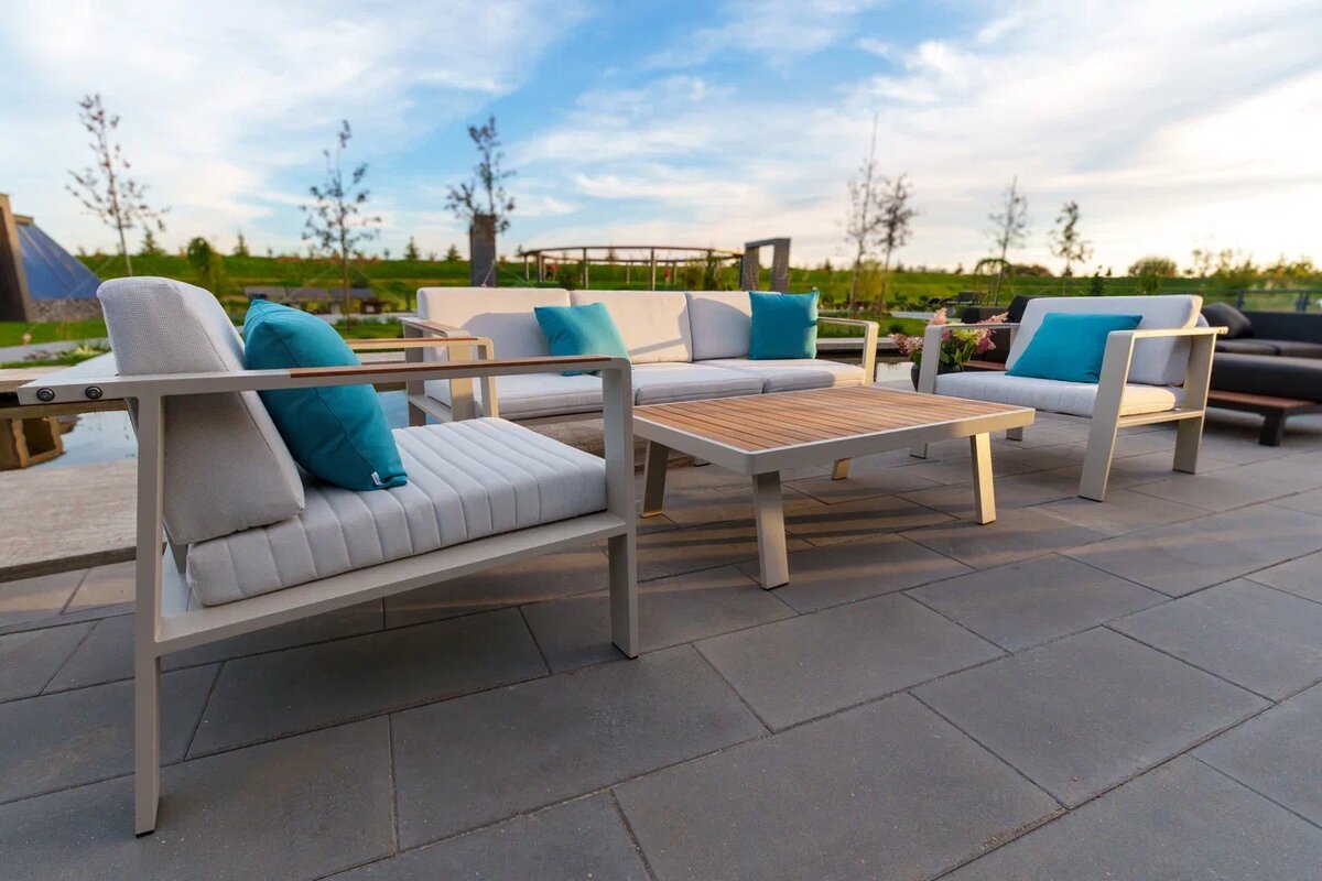 Модульность коллекции позволяет подобрать оптимальный комплект для террасы любого размера — от компактного балкона до просторной веранды.